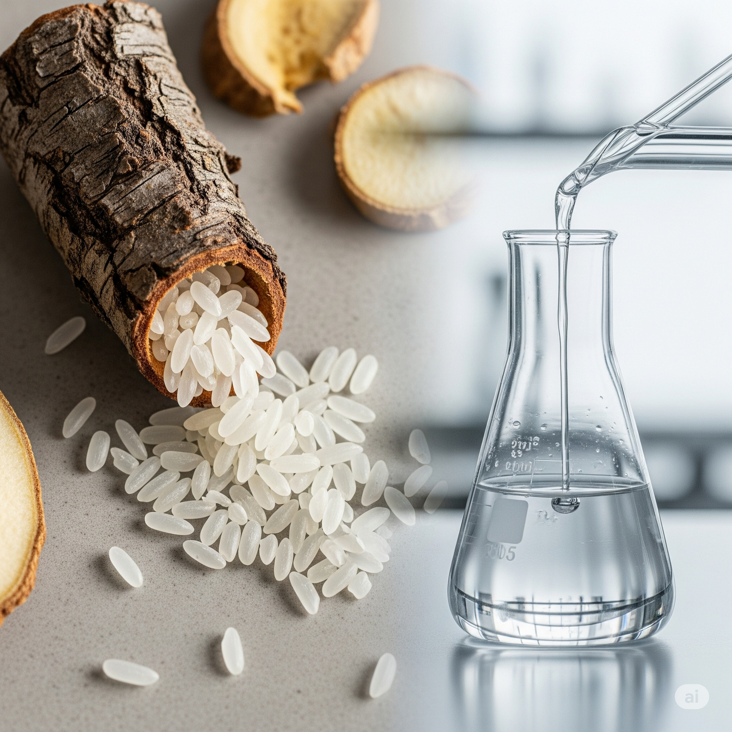 - Kojic Acid from Fermented Rice: We embrace the ancient Japanese tradition of rice fermentation to obtain Kojic Acid. This natural process unlocks a powerful ingredient celebrated in skin care for its ability to promote a brighter and more even skin tone.